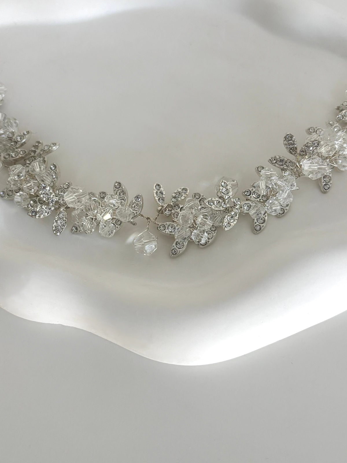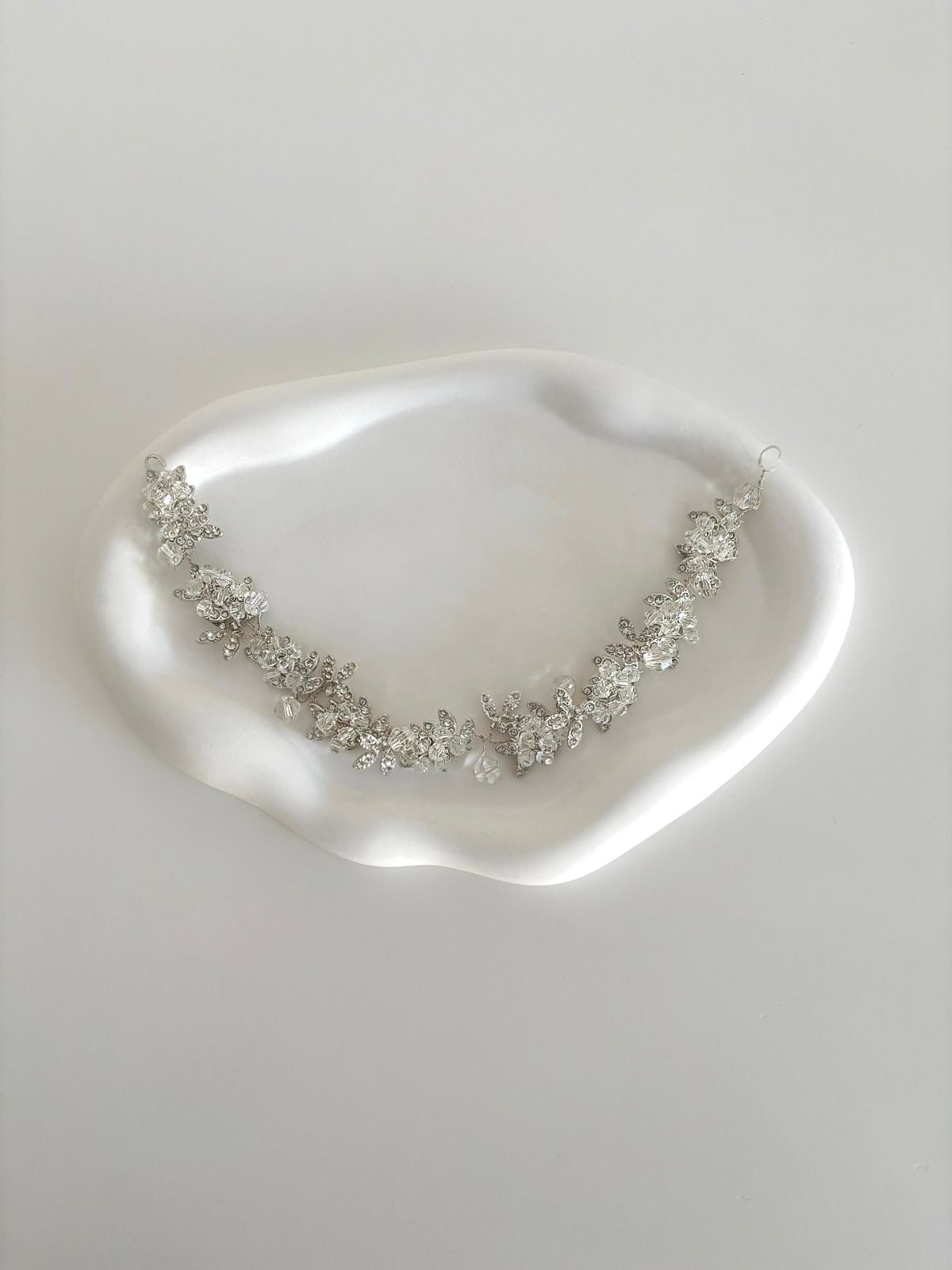 Este toado puede acomodarse en diadema o alrededor de un recogido para un look muy elegante.