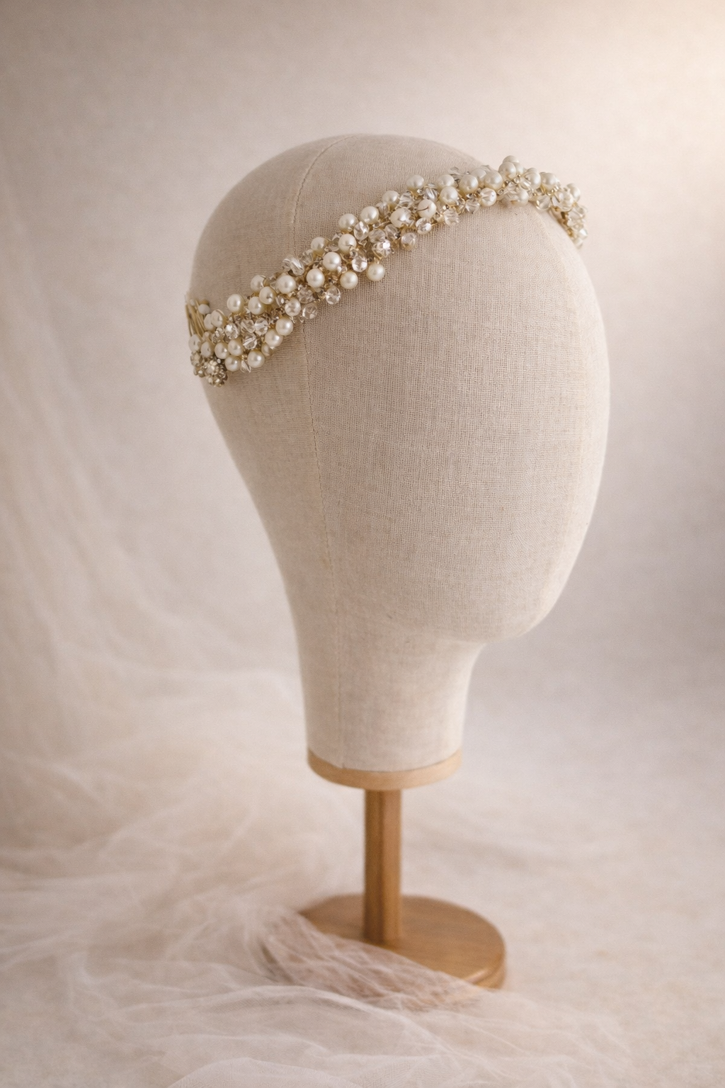 Trenzado de perlas y cristales. Ideal para usarlo alrededor de un recogido.