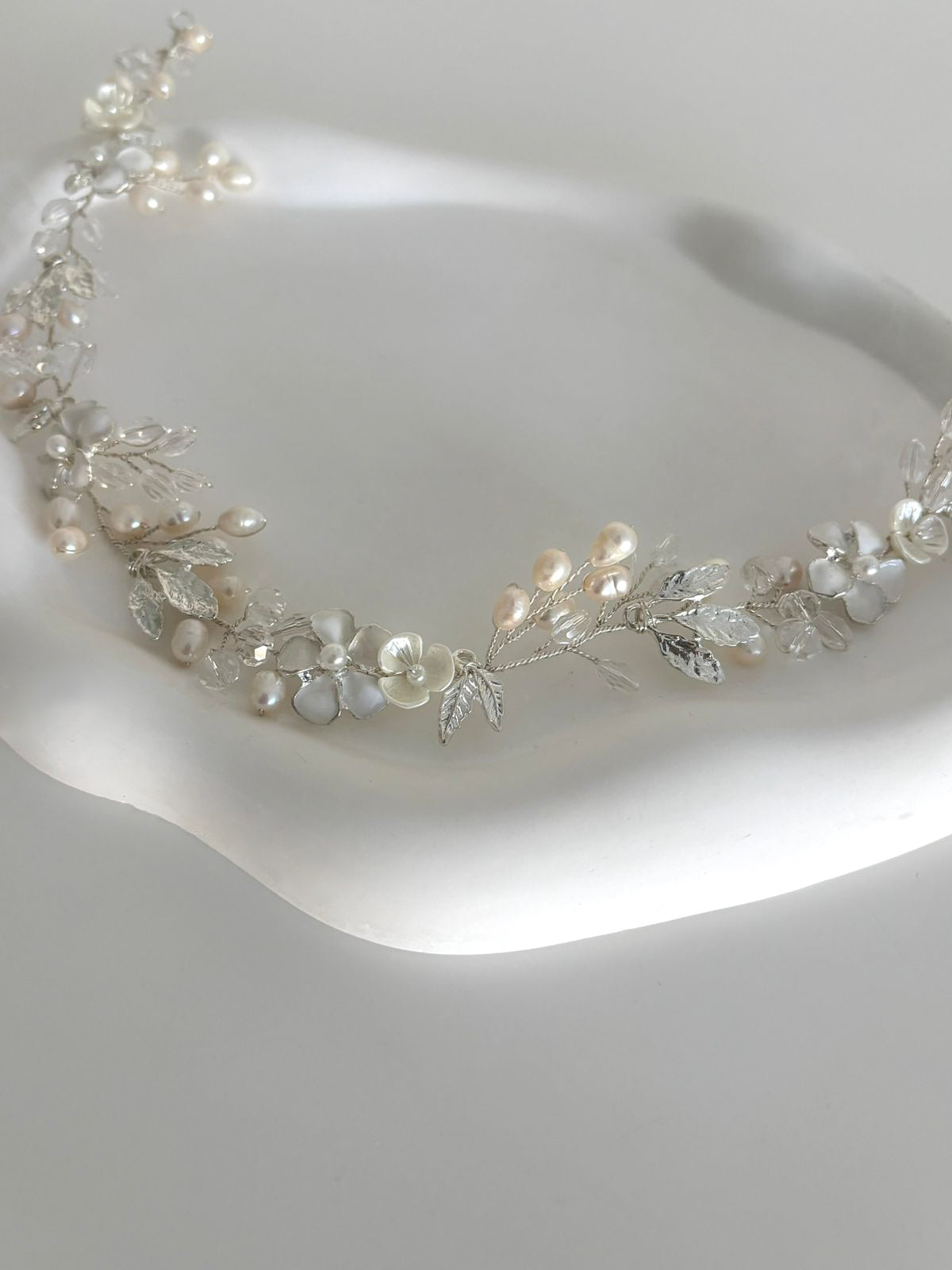 Guía flexible con mezcla de materiales para una novia que busca un toque romántico en su boda.